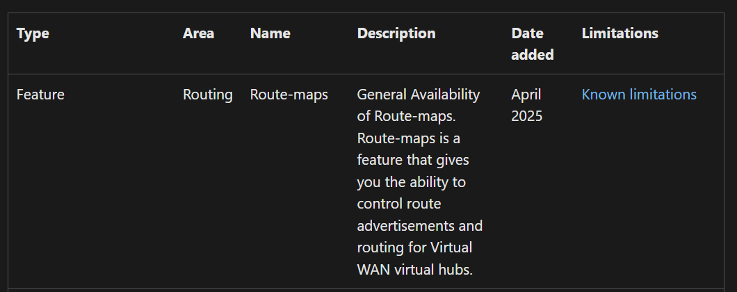 Route Maps are a fairly recent feature for Virtual WAN, having been made Generally Available in April 2025. Route Maps provide a way to control route advertisements and routing for Virtual WAN hubs – giving more granular control over the routing within your Virtual WAN topology.